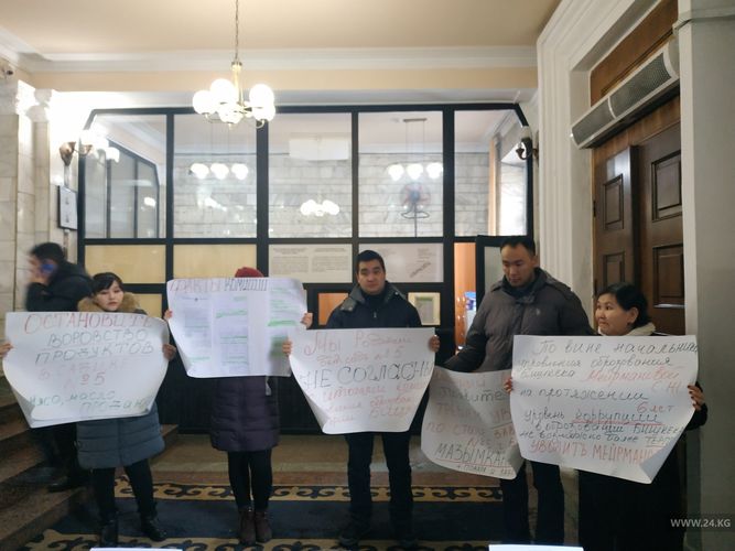 Бишкектин Биринчи май районундагы № 5 балдар бакчасынын тарбиялануучуларынын ата-энелери мэриянын имаратынын алдына митингге чыгышты. Алар мектепке чейинки уюмдун жетекчиси Динара Мазымканованы иштен алууну талап кылышууда.