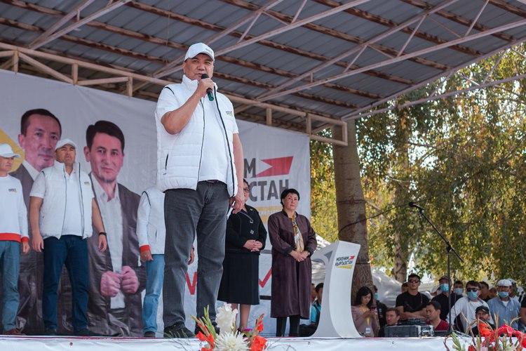 «Мекеним Кыргызстан» партиясынын үгүт кербени Ош облусунун Ноокат районуна жетти. Партиянын Ибрагим Жунусов, Искендер Матраимов, Алишер Козуев баштаган талапкерлеринин тобу ноокаттык шайлоочулар менен жолугушту.