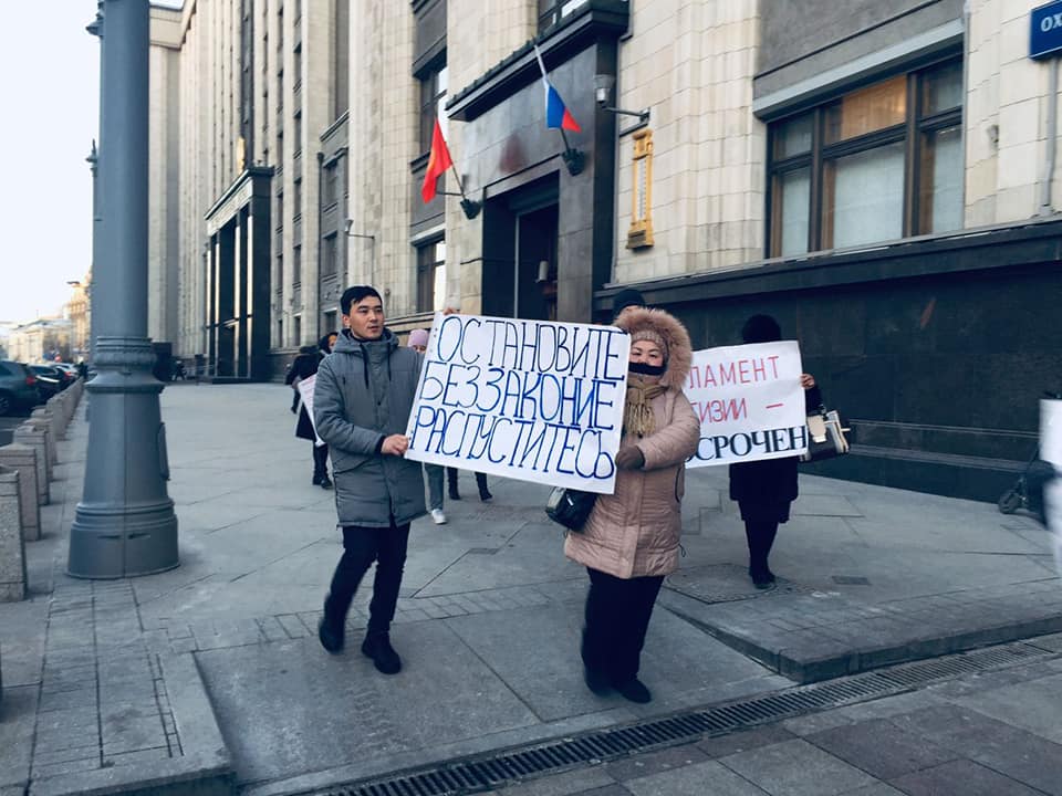 Алардын айтымында, Россиянын ордо калаасына президенттин милдетин аткаруучу Талант Мамытов иш сапары менен келээрине байланыштуу кыргызстандыктар митингге чыккан.
