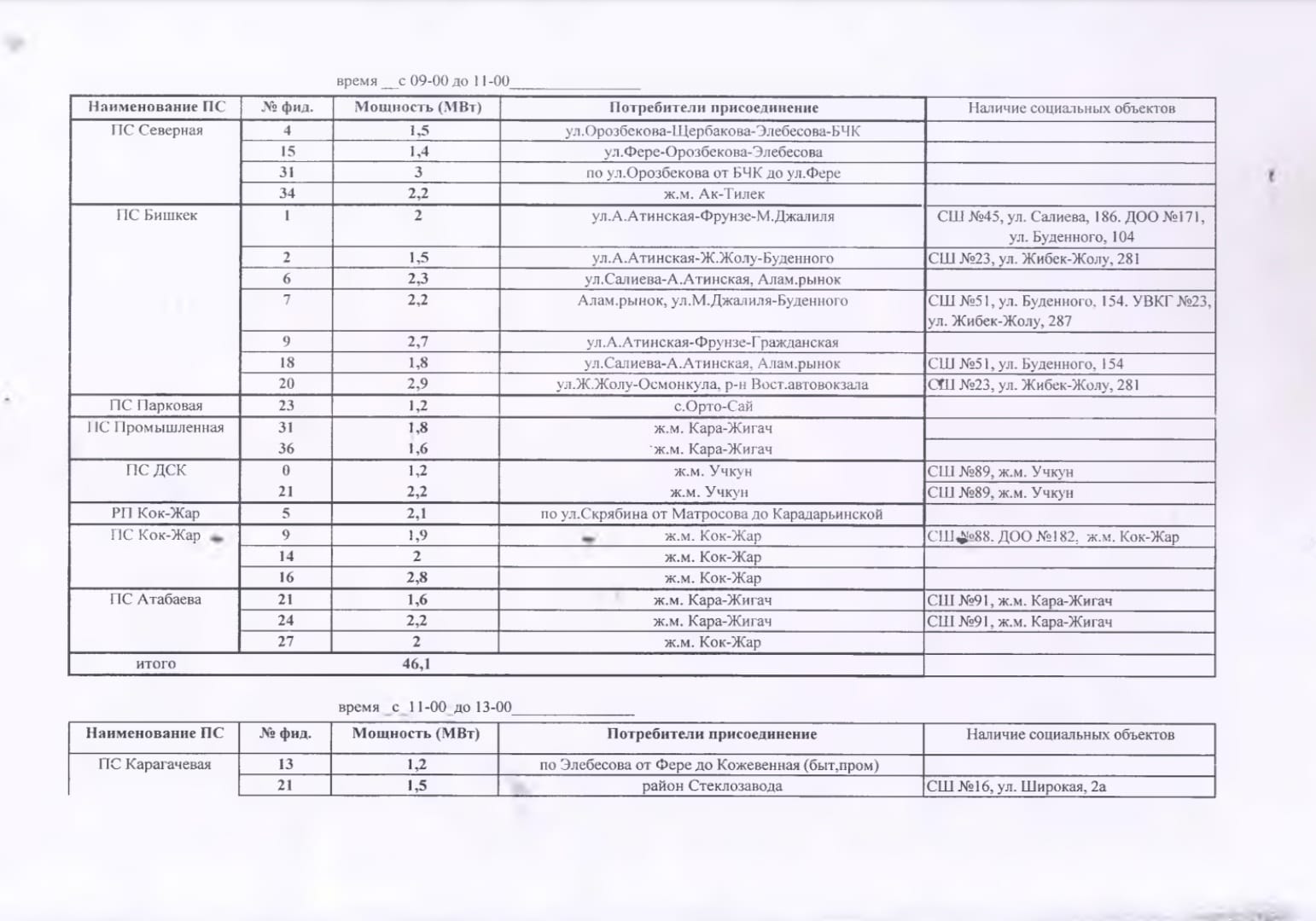 Бишкекте электр жарыгын өчүрүү графиги жарыяланды.