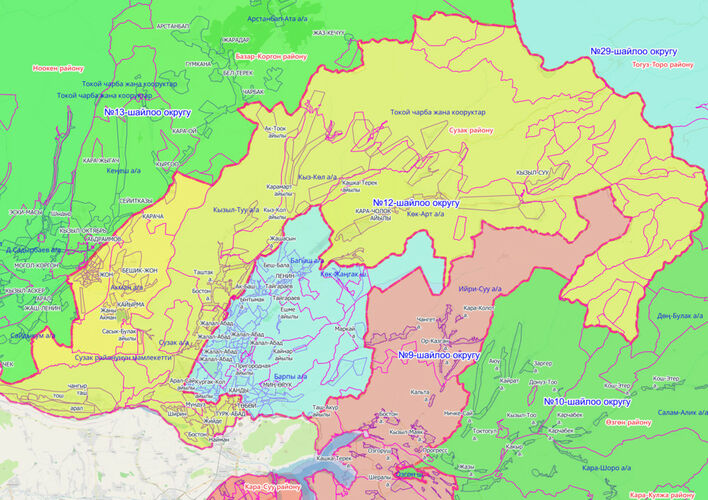 Кыргыз Республикасынын Борбордук шайлоо комиссиясы шайлоо округдарынын жаңыланган картасын чыгарды. Документ БШКнын расмий сайтында жарыяланды.