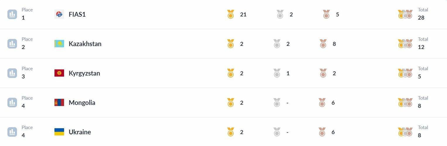Биздин спортчулар эки алтын жана эки коло медалды, ошондой эле бир күмүш медалды жеңип алышты. Нейтралдуу күчтөр катары катышкан орусиялык самбочулар биринчи орунду, ал эми казакстандык команда экинчи орунду ээледи.