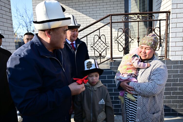 Ташиев жаңы үйлөрдүн ачкычын тапшырып жатып кайрымдуулук иштерди улантуу ар бир адамдын милдети экенин белгилеп, мындай жардам элдин ынтымагын жана бири-бирине боорукерлигин чыңдай турганын айтты.