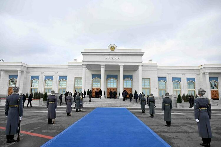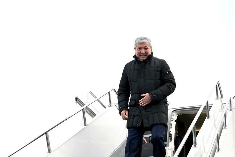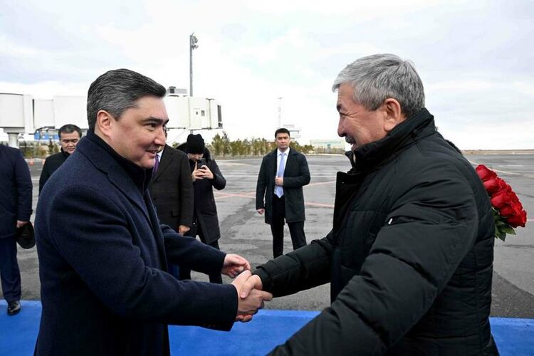 Министрлер кабинетинин төрагасы Адылбек Касымалиевди Казакстандын премьер-министри Олжас Бектенов жана башка расмий адамдар тосуп алышты.
