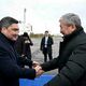 Аэропорттун флагштокторуна эки өлкөнүн мамлекеттик туулары илинип, ардактуу кароол тизилди.