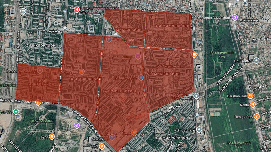 Учурда Бишкектин түштүк аймагындагы 3, 4, 5, 6, 7 жана 8-кичи райондордо, Юг-7 жана Молодежный кварталында, 3- жана 4-кичи райондордун астындагы жеке сектордо, Абай жана Малдыбаев көчөлөрүнүн боюнда (Ахунбаев көчөсүнөн жогору), ошондой эле Онкология борборунда жана Республикалык психиатрия жана баңгилик борборунда ичүүчү суу берүү убактылуу токтотулду.