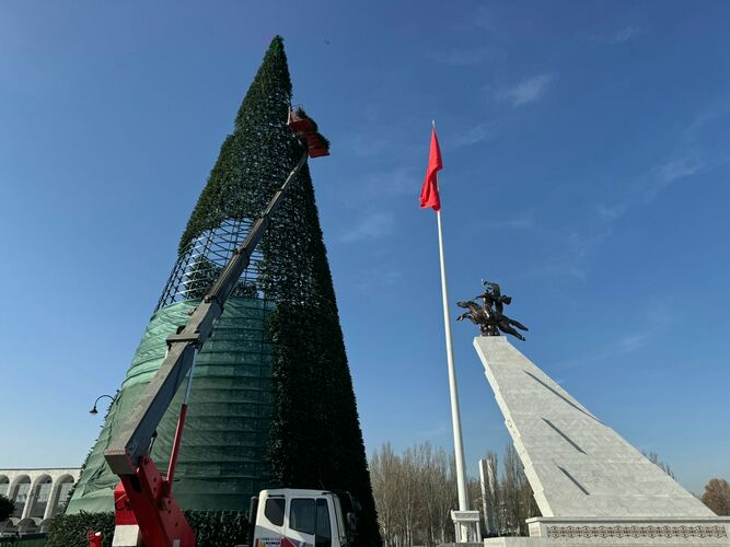 Бишкектеги Ала-Тоо аянтындагы жаңы жылдык башкы балаты дээрлик орнотулуп бүттү. Калыбынын көпчүлүк бөлүгү чогултулуп, формага келтирилген. Ал эми шаар бийлиги орнотууну 1-декабрга чейин бүтүрүүнү пландап жатат. Андан кийин алар 32 метрлик алп балатыны кооздой башташат. 24-kg.com басылмасы окурмандар менен иштин жүрүшү менен бөлүшүүнү чечти.