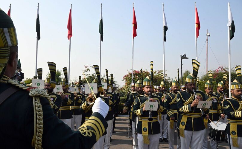 Президент Садыр Жапаровду Пакистандын премьер-министри Шахбаз Шариф тосуп алды. Саламдашуудан кийин эки өлкөнүн мамлекеттик гимндери аскердик оркестрдин коштоосунда жаңырды. Ардактуу кароол командири саламдашуу рапортун берди.