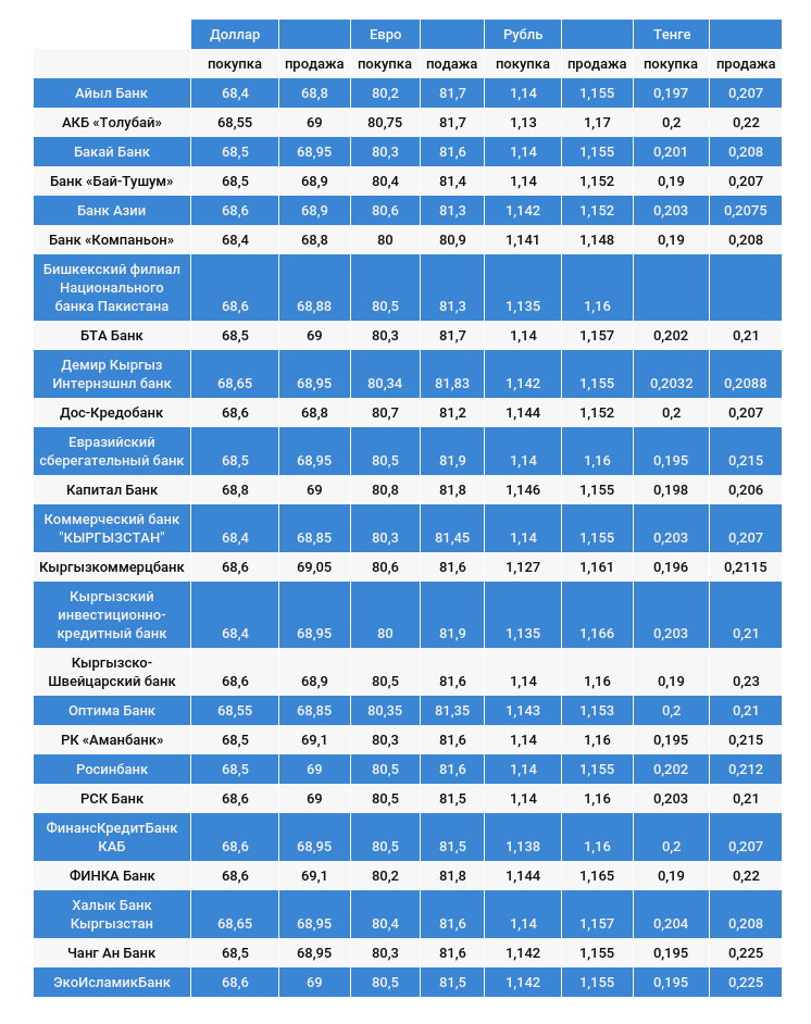 Валюталардын коммерциялык банктардагы наркы