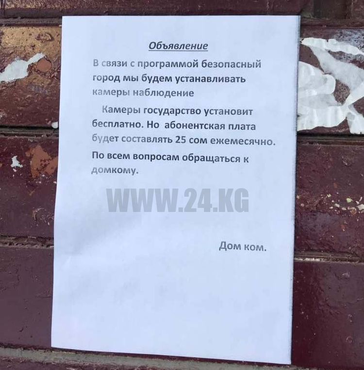 «Акылдуу шаар» ишке ашпай жатып, акы топтоо жарыяланды. Мындай жарыя Бишкек шаарынын Гоголь көчөсүндөгү үйгө илинди.