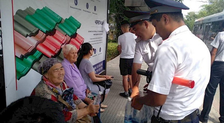 Бишкекте жол кыймылы коопсуздугун көзөмөлдөө башкы башкармалыгынын кызматкерлери айдоочуларга, жөө жүргүнчүлөргө жана тургундарга муздак суу таратышты. Бул тууралуу аталган башкармалыктан билдиришти.