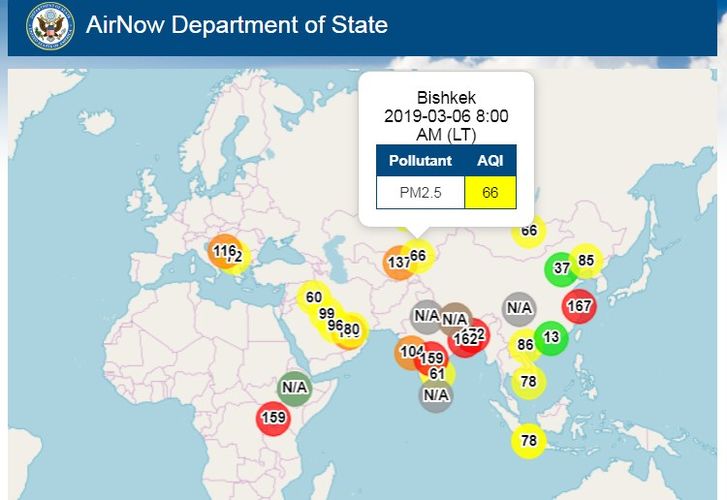 Посольство США в Кыргызстане также установило датчик, измеряющий уровень загрязнения воздуха. Информация обновляется ежечасно.