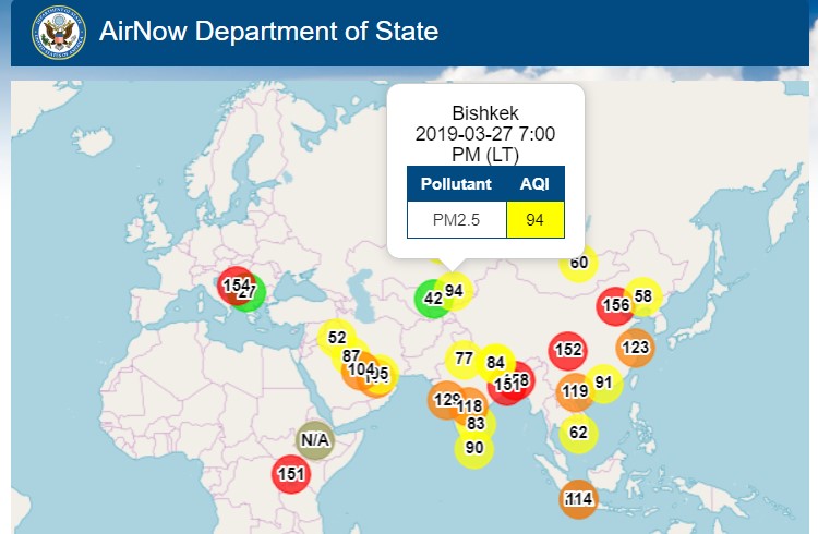 Посольство США в Кыргызстане также установило датчик, измеряющий уровень загрязнения воздуха. Информация обновляется ежечасно.
