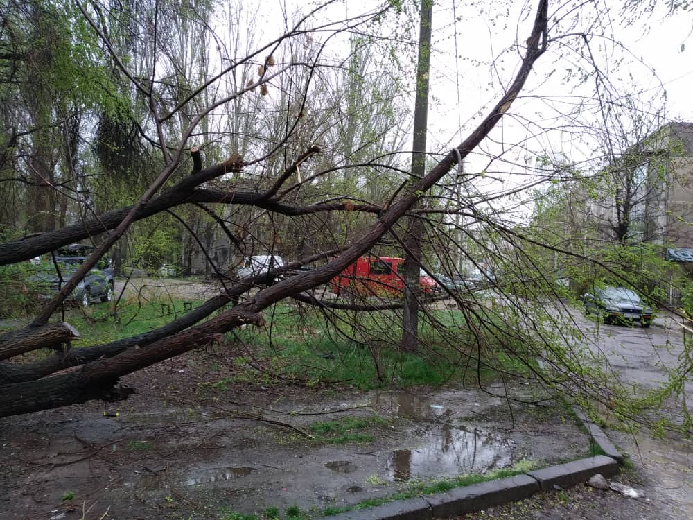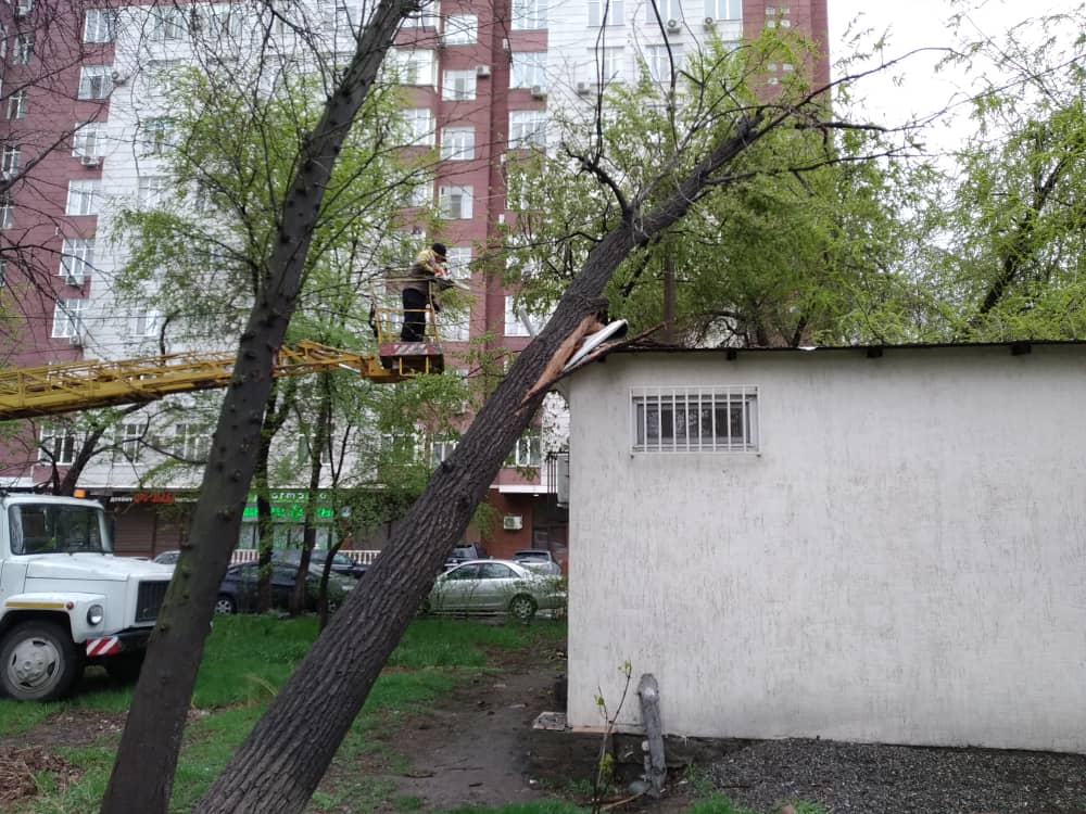 Сообщается, что утром 30 марта на пересечении улиц Гоголя и Жумабека упал вяз мелколистный (карагач). Причиной падения стало то, что дерево росло вдоль фундамента пятиэтажного дома. Посажено оно было в нарушение правил СНиП (от здания не менее 5 метров). При падении дерево повредило один электрический кабель.