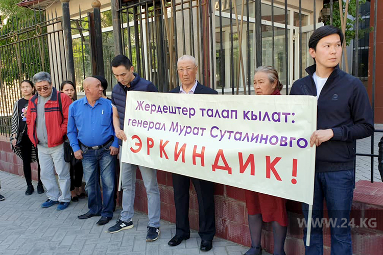 В Бишкеке возле здания городского суда собрались сторонники экс-главы СНБ (ныне ГКНБ) Мурата Суталинова.