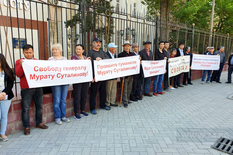Около 30 человек развернули плакаты «Свободу генералу Мурату Суталинову».