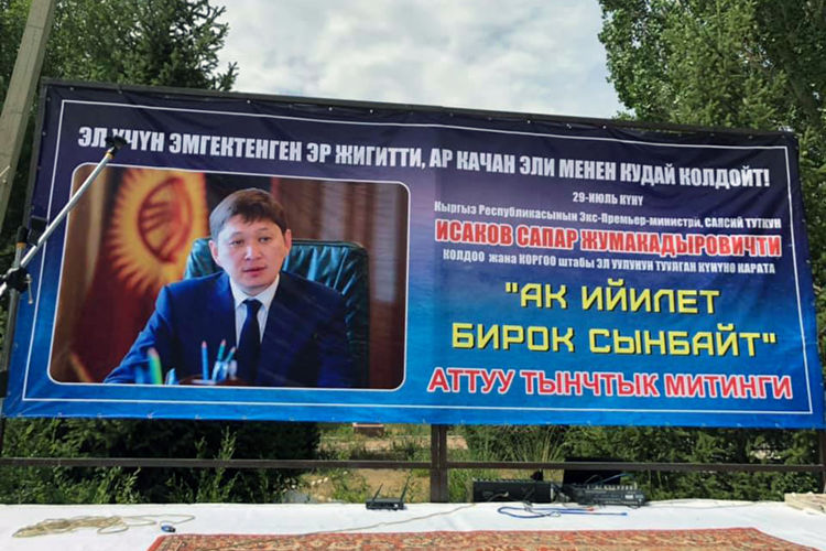 В Кочкорском районе Нарынской области проходит митинг в поддержку бывшего премьер-министра Сапара Исакова. Акция протеста приурочена к дню его рождения.