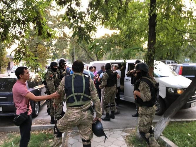 Известно, что, кроме прочего, арестовано здание «Форума», расположенное по улице 7 Апреля (бывшая Алматинская). Здесь работают радиостанции, редакции СМИ и другие организации.