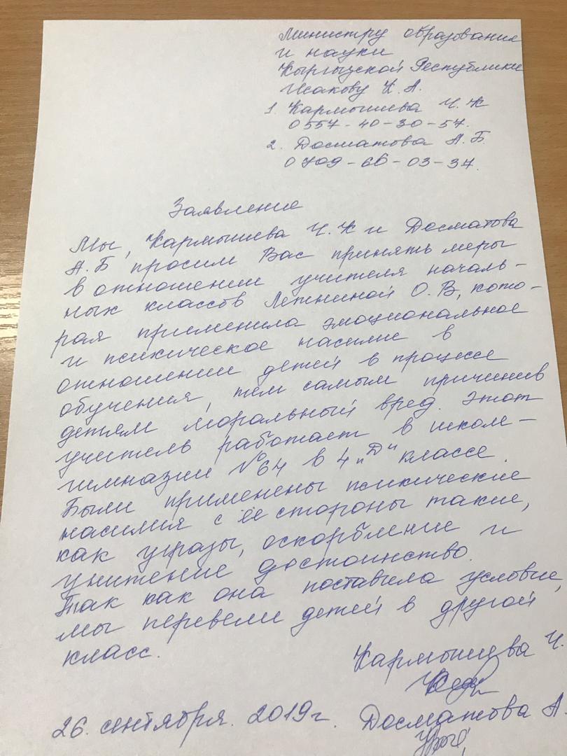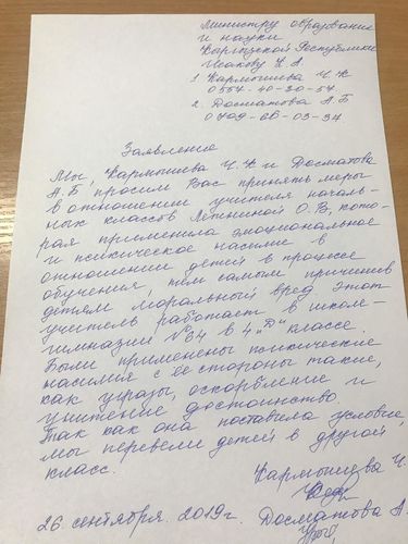 Одна из заявительниц рассказала 24-kg.com, что учительница неподобающим образом ведет себя с учениками. Кричит на них, обзывает тупыми. Дети испытывают постоянный стресс. Одной девочке стало плохо с сердцем.