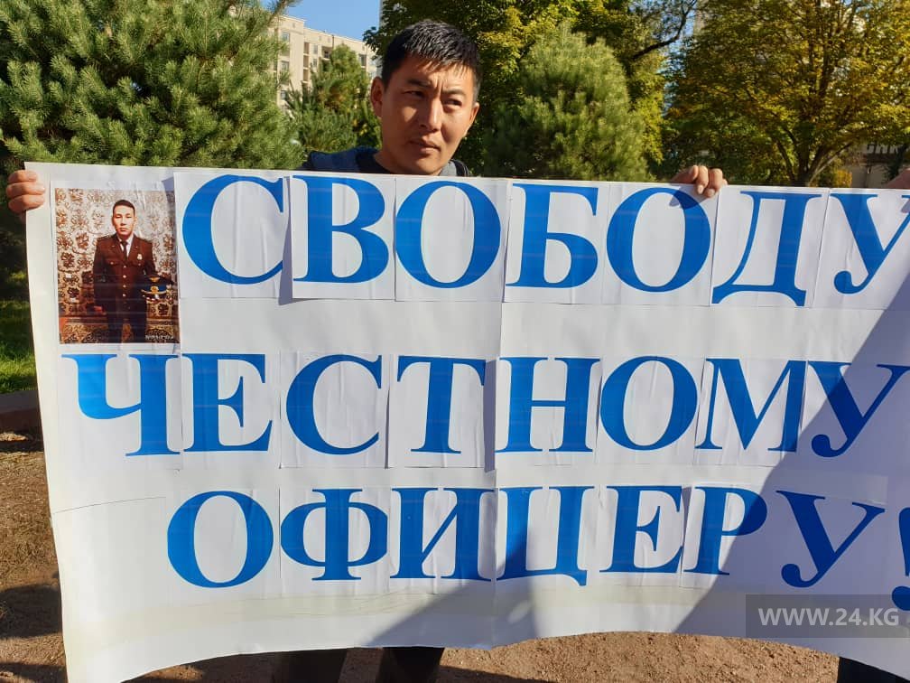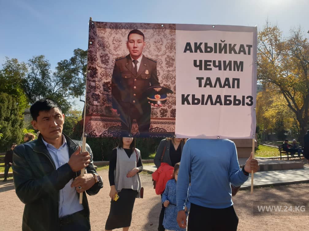 В Бишкеке в сквере имени Максима Горького проходит митинг в поддержку телохранителя бывшего президента Алмазбека Атамбаева Каната Сагымбаева.