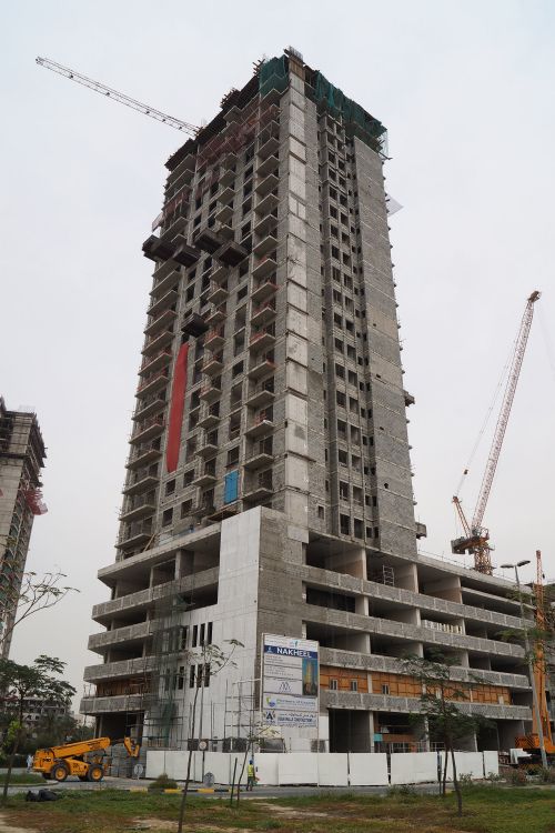Скорее всего, это означает, что AKA Residences и Habib Residences строятся практически на одном участке. Фотографии со стройки, датированные мартом 2018-го, это только подтверждают. На них хорошо видно, что рядом с небоскребом возводят и пятиэтажное здание.