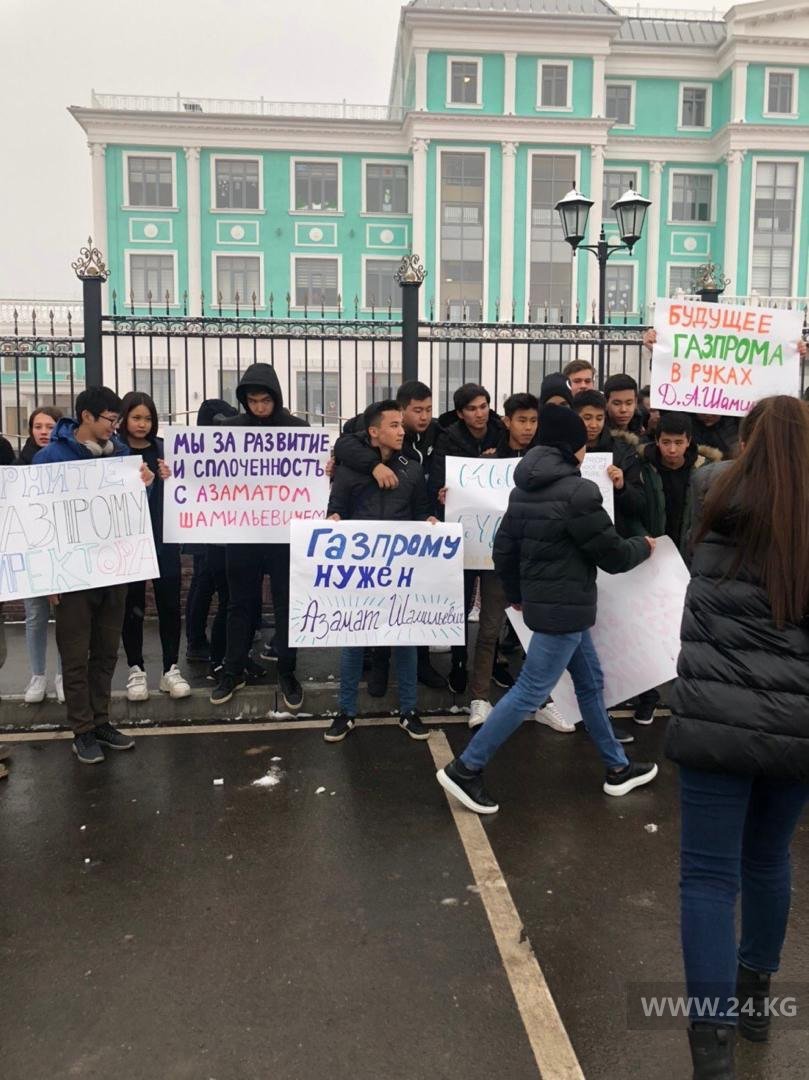 Фото 24-kg.com. Учащиеся и их родители вышли на митинг против смены директора школы «Газпром»
