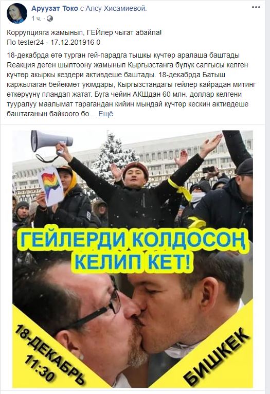 Фейковые аккаунты также пытаются выдать акцию гражданских активистов и неравнодушных кыргызстанцев за гей-парад и призывают не поддерживать ее. Большинство публикаций распространяют фальшивые аккаунты.