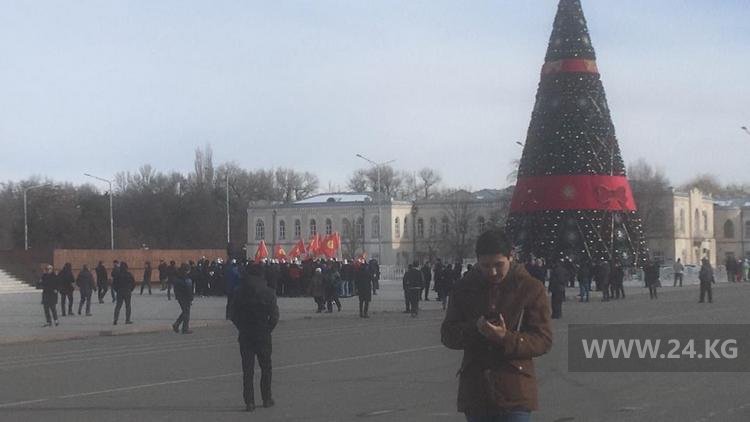 Милиция разделила участников и противников митинга в поддержку СМИ и против коррупции, который проходит на площади Ала-Тоо.