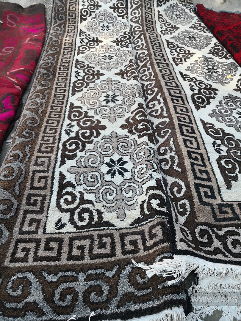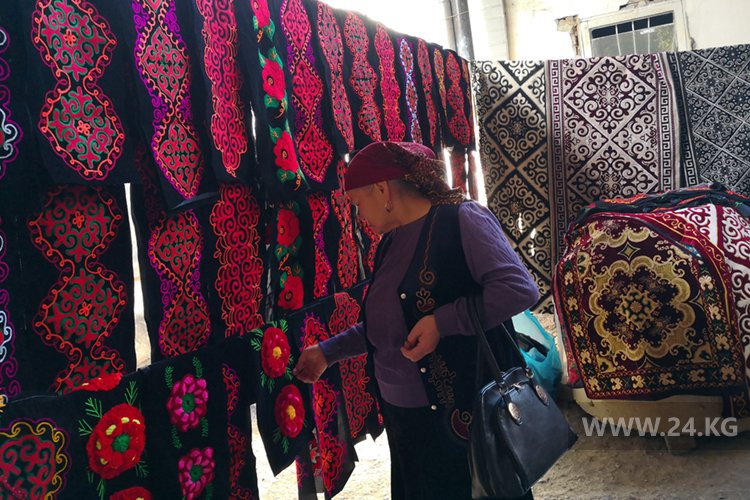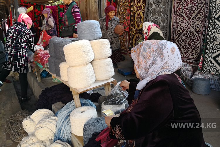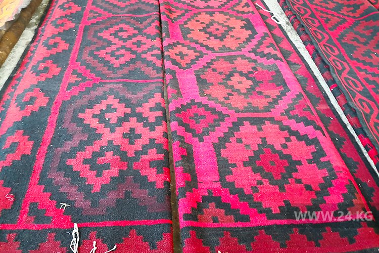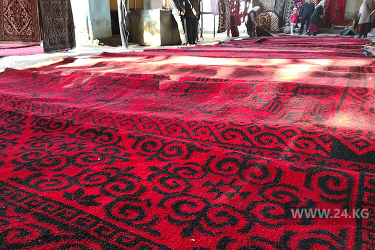 «Самые большие шерстистые ковры 4 на 3 метра. По заказу можно, наверное, сделать еще больше, но у меня только такой размер. Их как раз и покупают для приданого. Они стоят в зависимости от цвета 30-40 тысяч сомов», — рассказал один из продавцов.
