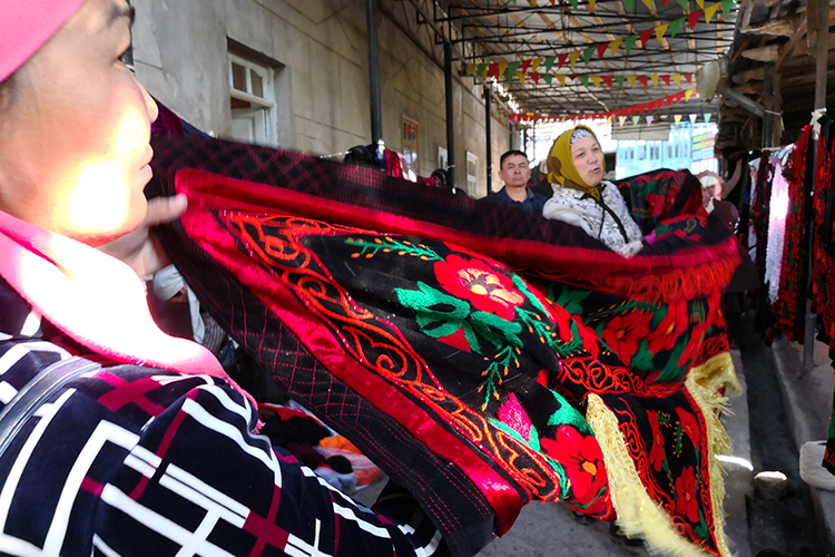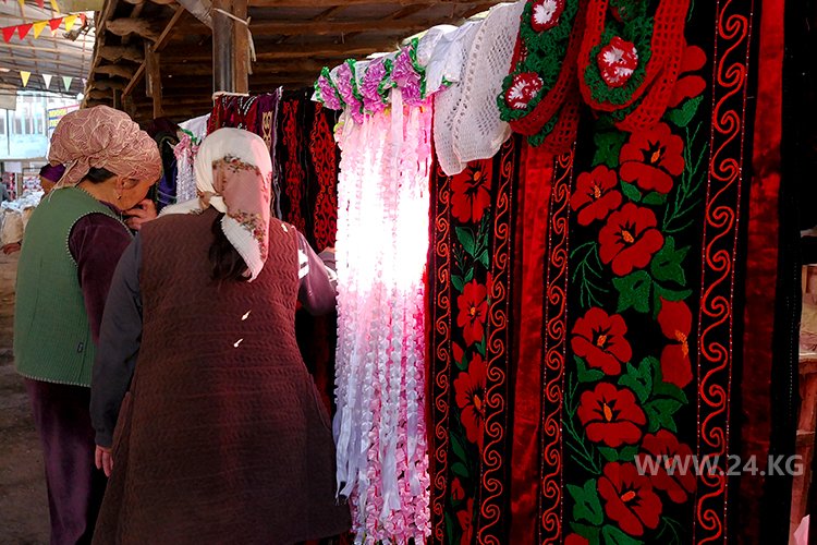 Каждый четверг на центральный рынок района местные мастерицы выходят продавать свои работы. Красивые узоры, красные розы, тюльпаны и лилии украшают ковры, туш кийизы и тошоки. От разнообразной цветовой гаммы не оторвать глаз.На рынке можно найти все, что изготавливают вручную, и то, что необходимо для приданого и для важных событий. Например, на жээнтек той тут можно купить колыбель со всеми принадлежностями.