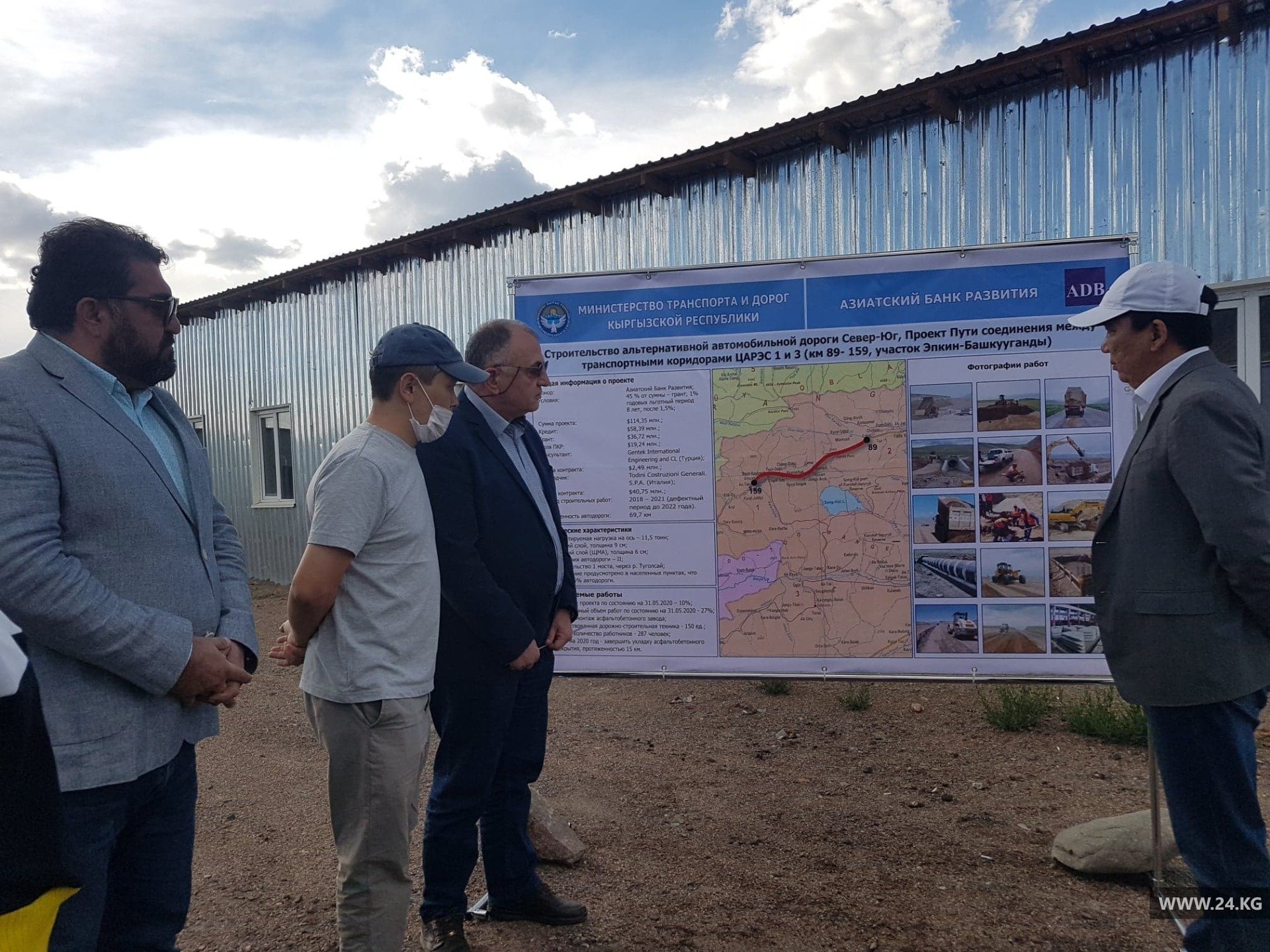 Проинспектировать строительство в Нарынскую область также отправился министр транспорта и дорог Жанат Бейшенов в сопровождении постоянных инженеров проекта.