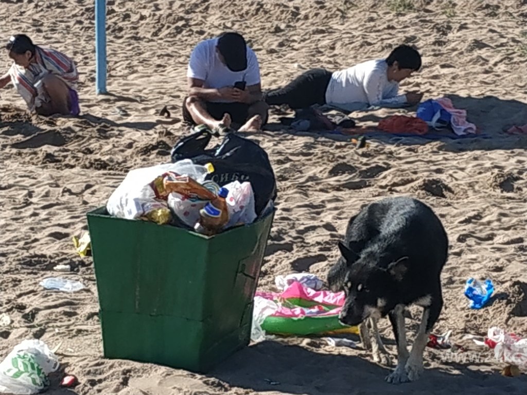 В «Береке» отдыхающие живут своей размеренной жизнью. Здесь также никто не соблюдает социальную дистанцию. Отдыхают в основном семьями. Из частного сектора они приезжают утром на пляж на своих машинах. За 100 сомов охрана пансионата пускает их на территорию, они приносят с собой кучу сумок со всевозможной снедью. Все содержимое уничтожается уже ближе к обеду. Ворох отходов не умещается в небольшую урну, и к вечеру вся близлежащая территория напоминает свалку. Запах пищи привлекает свору голодных бродячих собак. Животные крутятся среди курортников. Здесь псы чувствуют себя так вольготно, что готовы вырвать понравившийся кусок прямо из рук. Но это опасное соседство не мешает людям загорать и купаться.