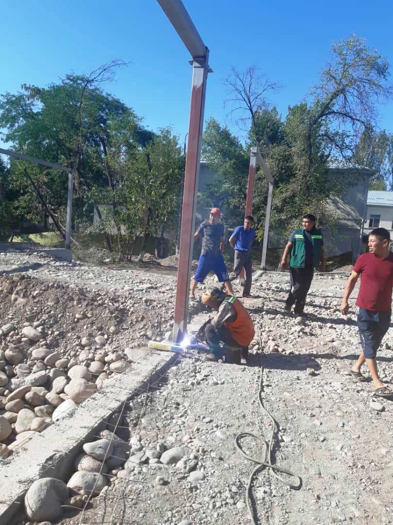 В новой экспериментальной быстровозводимой инфекционной больнице Бишкека начали установку металлокаркасных стоек и балок. Об этом сообщили в пресс-службе Госстроя.