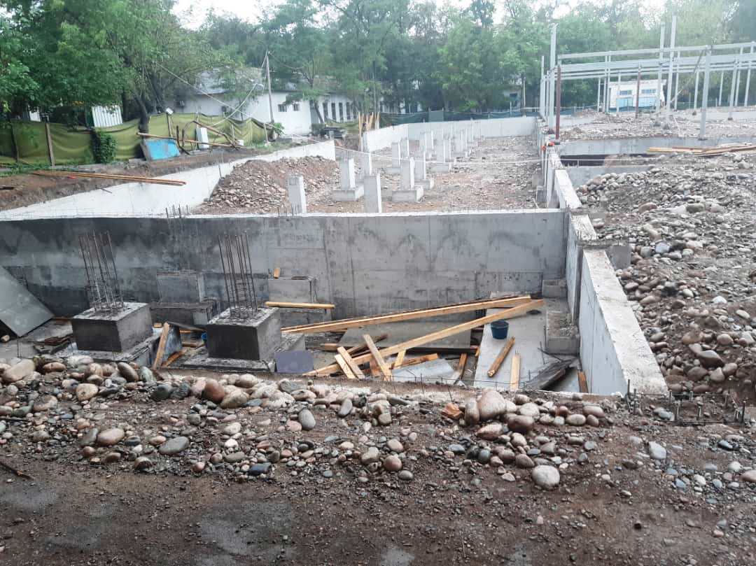 На сегодня завершили фундаменты всех четырех блоков, а также на 90 процентов закончилась работа по обратной засыпке котлованов. Для сварочных и других видов работ по монтажу металлокаркасных конструкций под установку облегченных материалов привлекли 25 специалистов.