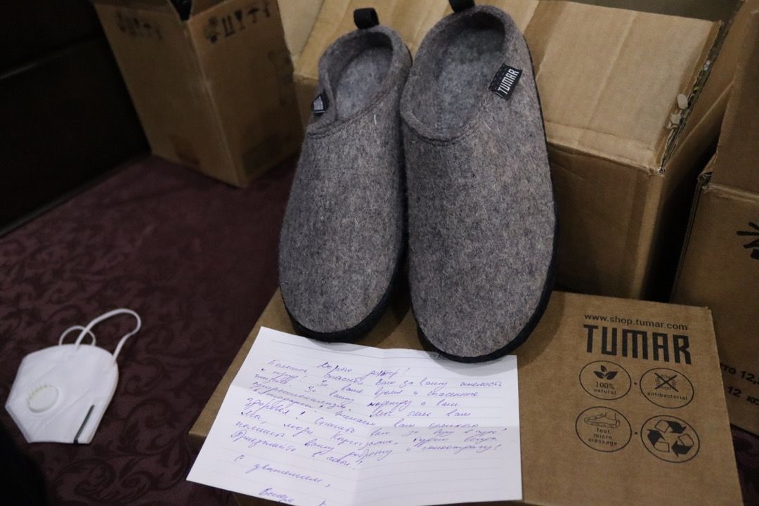 «Я увидела пост одного из журналистов о том, что российские доктора уезжают к себе на родину. Журналист предлагал в качестве благодарности подарить врачам калпак. Позже мы списались в личном чате и решили подарить войлочные тапочки с замшевой подошвой, так как эта идея показалась более оригинальной», — рассказала активист.