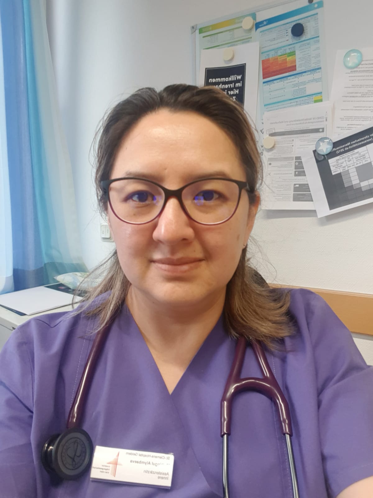Врач Мейкингул Алымбаева пять лет назад уехала жить с семьей в Германию. Сейчас она работает в больнице города Гельдерна и лечит больных коронавирусом.