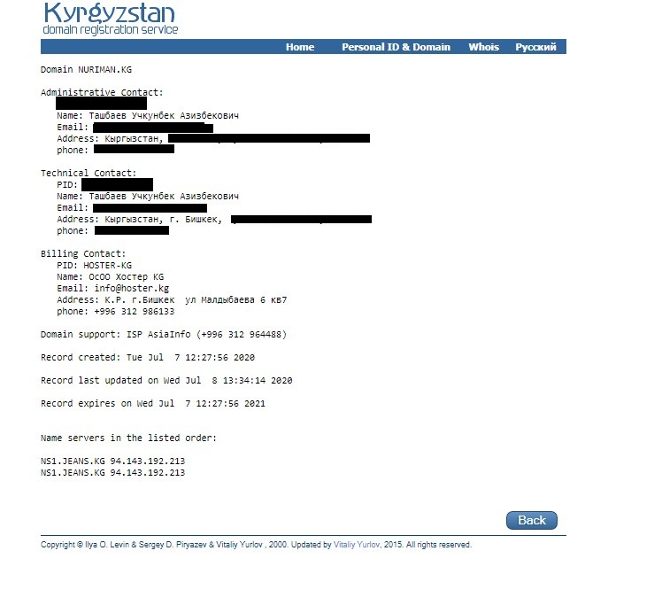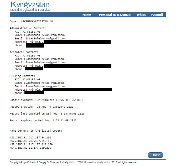 Информация о владельце домена и дате регистрации ресурса закрыта. Известно лишь то, что он был создан в Чуйской области.