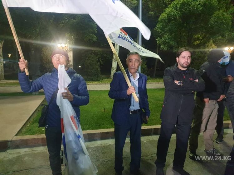 Члены партии «Социал-демократы Кыргызстана» вышли на акцию протеста. Она проходит у здания Жогорку Кенеша.
