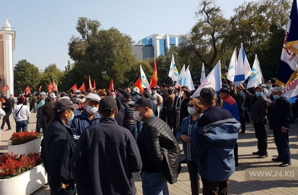 Партии «Республика», «Бир Бол», «Замандаш» и «Ата Мекен» вышли на митинг у здания Кыргызского национального академического театра оперы и балета имени Абдыласа Малдыбаева.