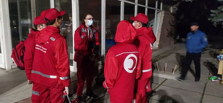 Команды реагирования на бедствия Красного Полумесяца продолжают патрулировать Бишкек. Они оказывают помощь пострадавшим.