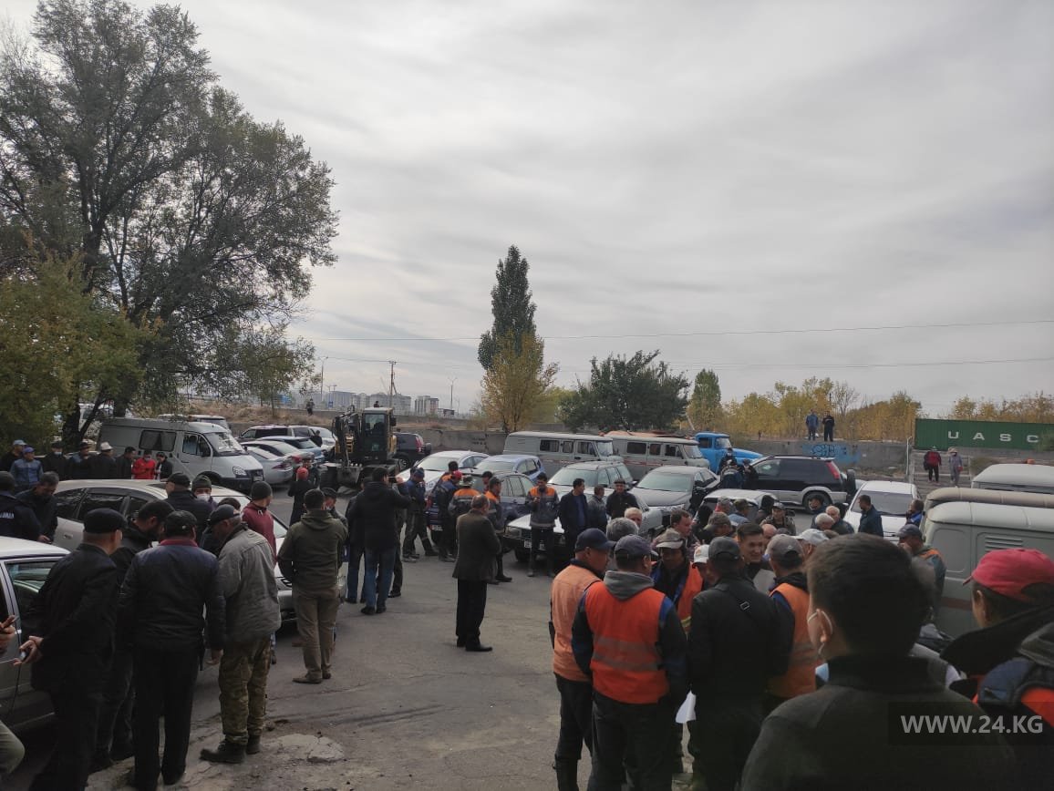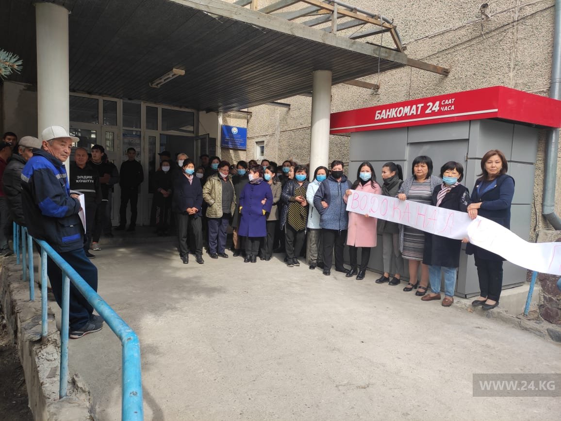 У здания Бишкекводоканала митингуют сотрудники предприятия, не довольные увольнением начальника Мурадина Сейдалиева.