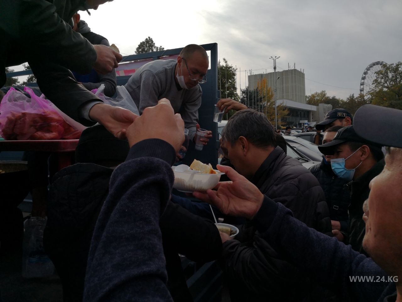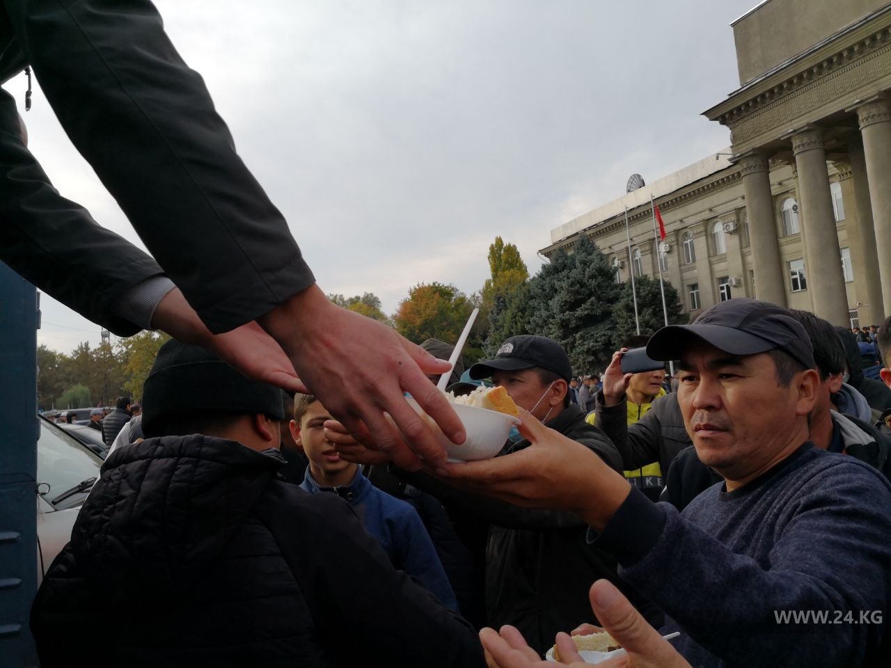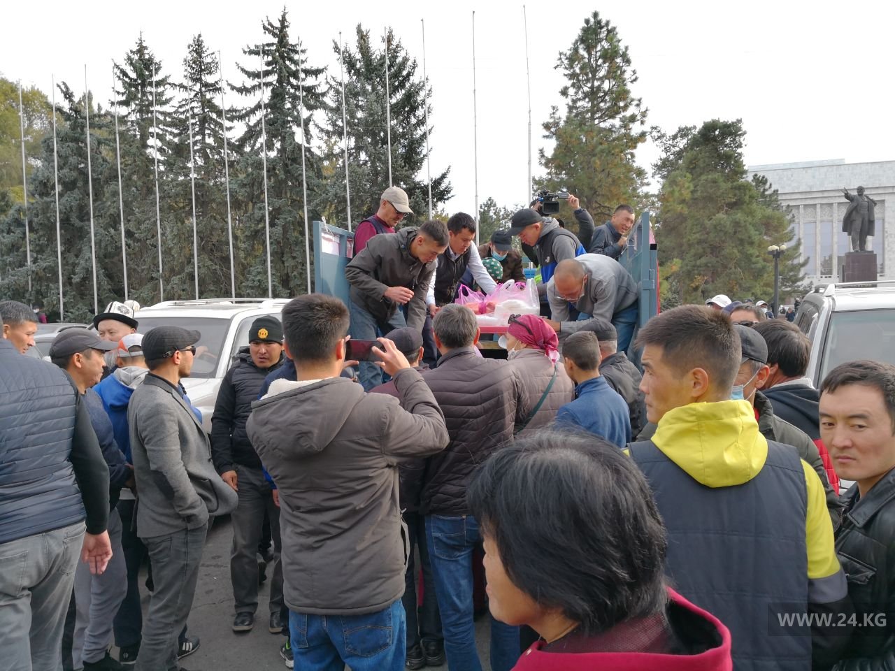 Митинг сторонников Садыра Жапарова возле Дома правительства продолжается.