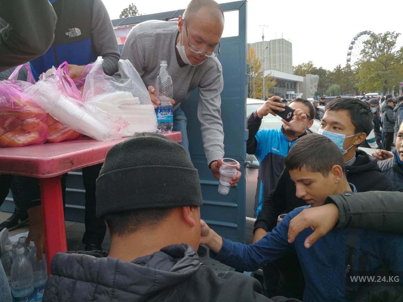 Народные дружинники приготовили большой казан плова, привезли хлеб и воду. Кормят митингующих, предлагают поесть журналистам, всем желающим.