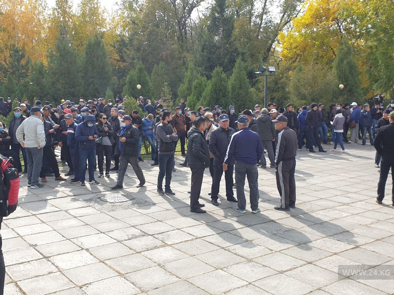 Митингующие скандируют: «Сооронбай кетсин!», «Бабанов!»