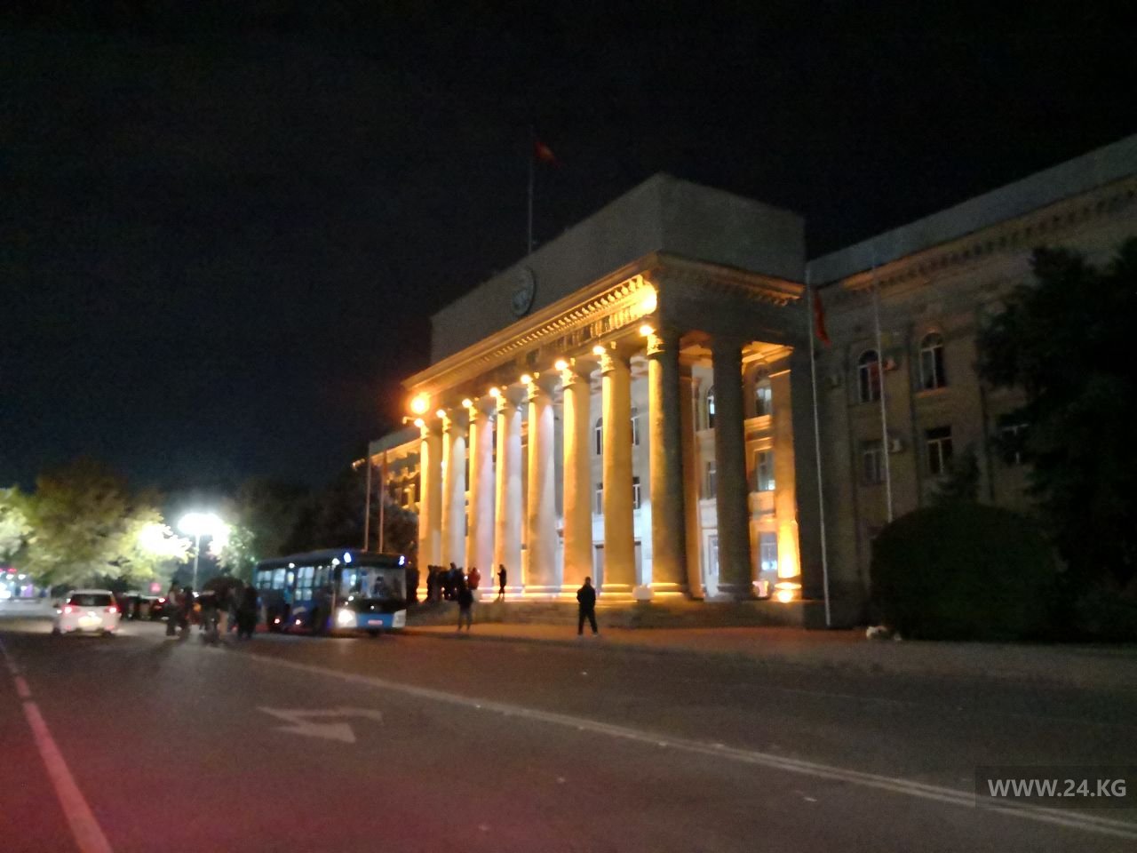 Обе площади в Бишкеке — Ала-Тоо и Старая — опустели. Митингующие разошлись. Сообщается, что большинство уехали на ночлег в отель «Ак-Кеме».