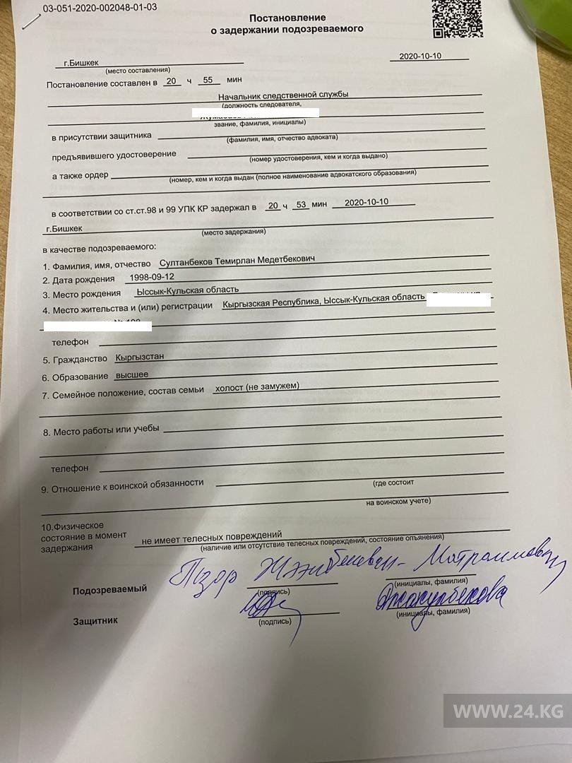 В рамках уголовного дела по факту массовых беспорядков в Бишкеке на 48 часов задержан сторонник Алмазбека Атамбаева Темирлан Султанбеков. Об этом 24-kg.com сообщили собственные источники.