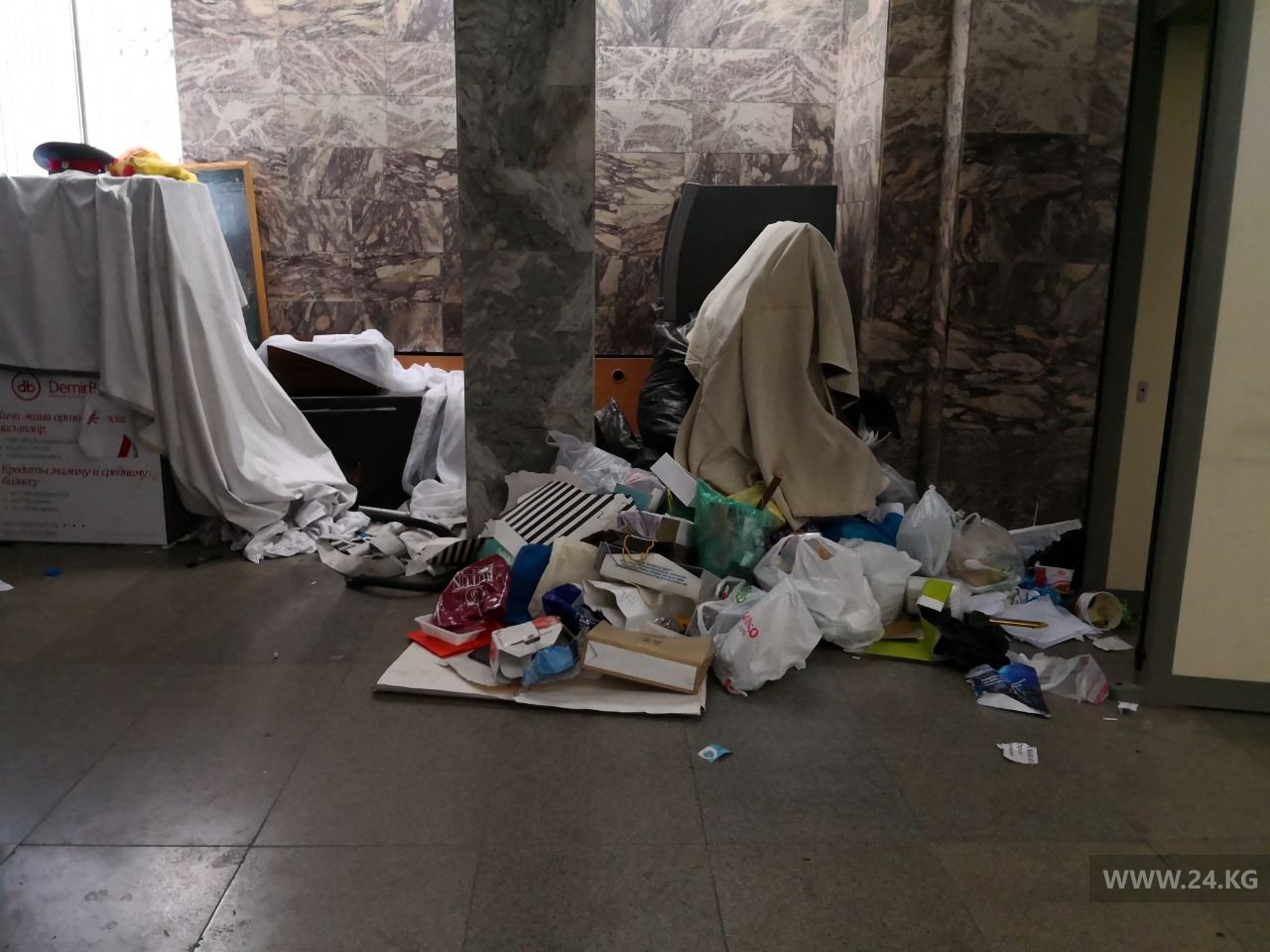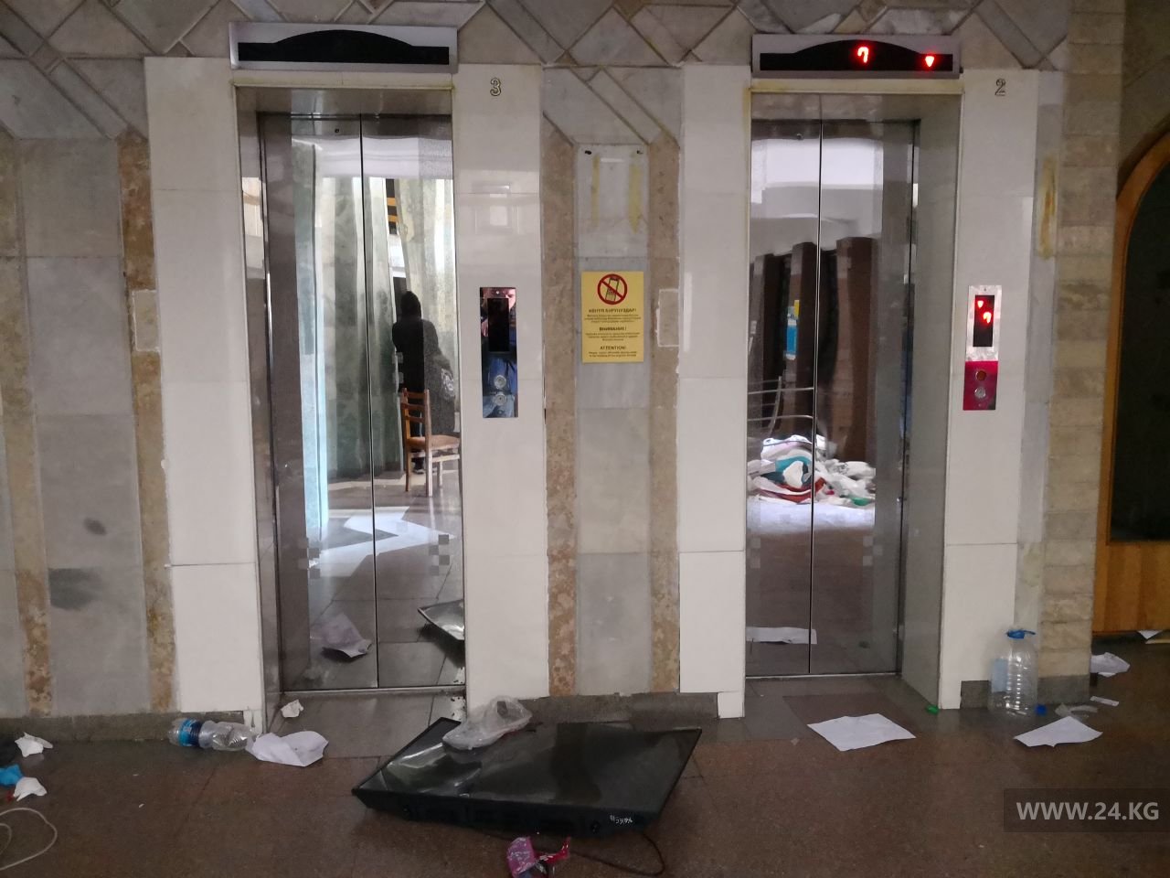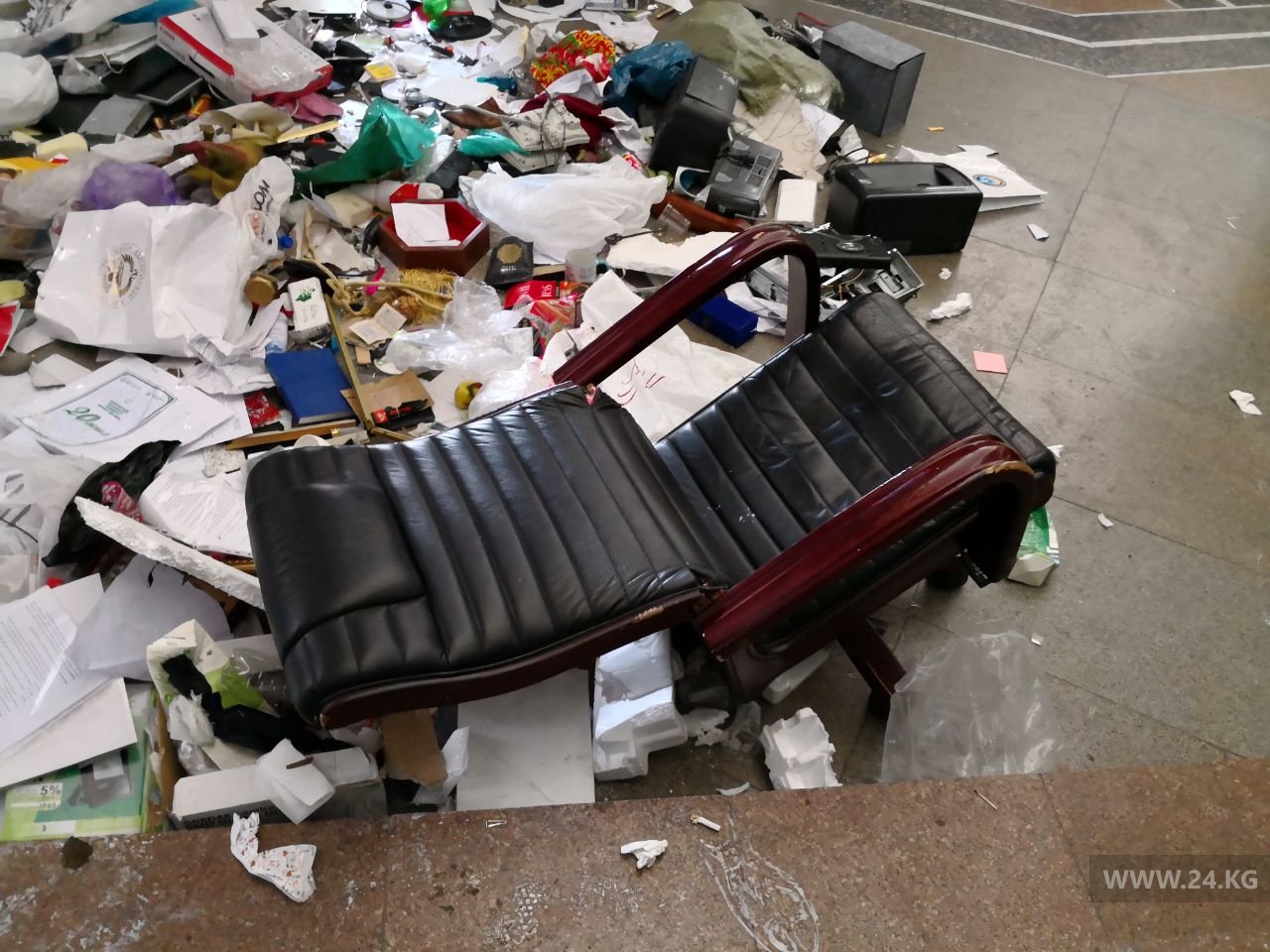 Во всех помещениях царит хаос. Добровольцы со всего Кыргызстана продолжают охранять здание от мародеров.