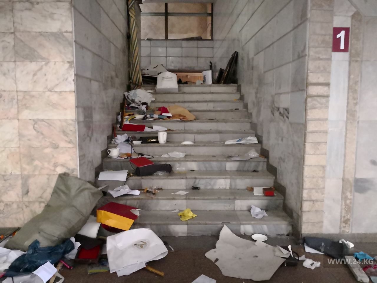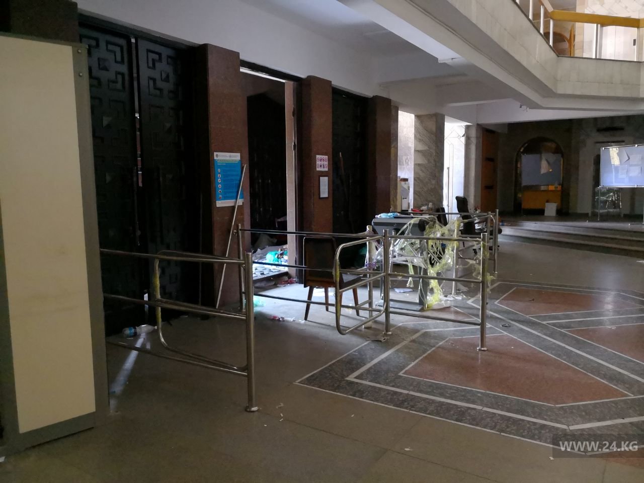 Практически все документы, мебель и техника в здании Жогорку Кенеша уничтожены или разграблены.
