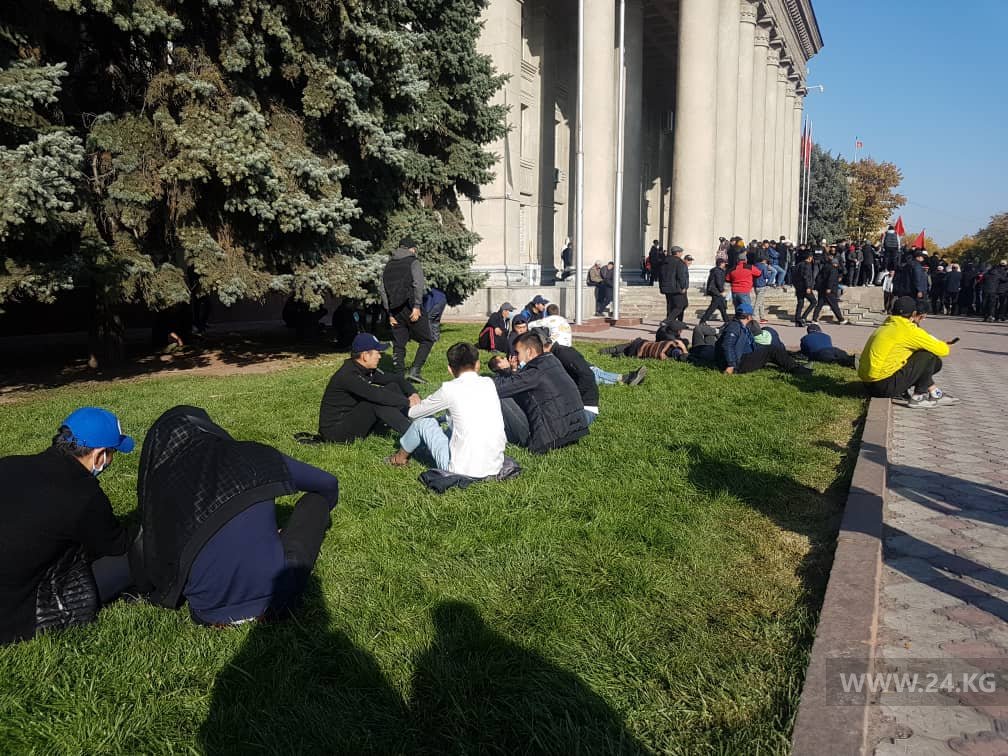 Утром они требовали утвердить их лидера на пост премьер-министра. Большинство депутатов уже проголосовали за, президент подписал указ о назначении Жапарова главой кабмина.