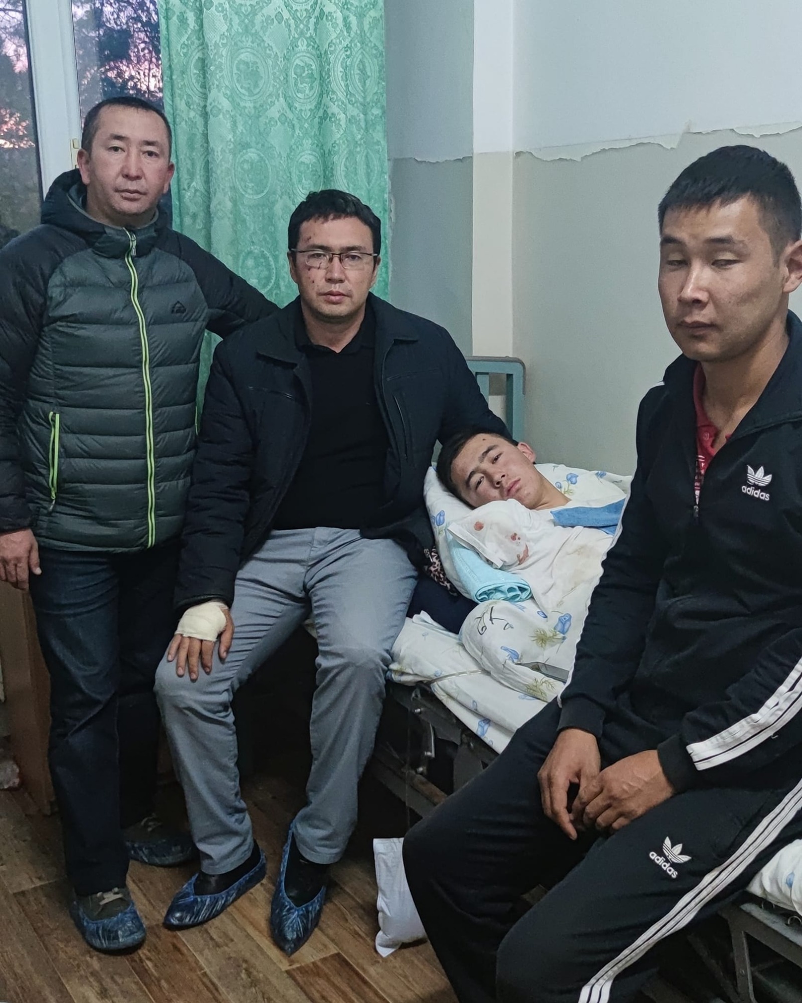 В соседней палате находится еще один участник тех событий — 26-летний Насирдин Мамыров. Он тоже получил травму на площади.